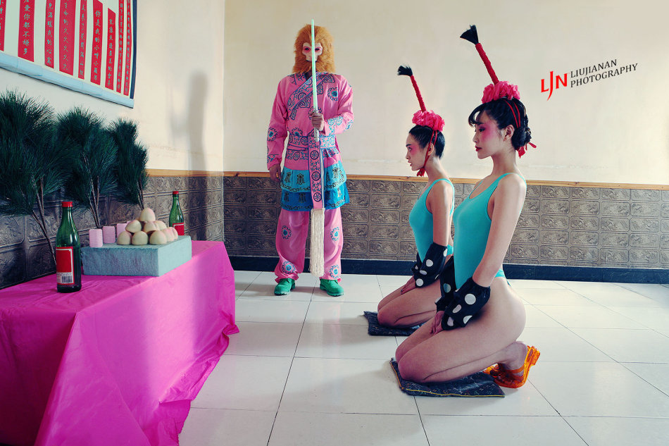 這次我對秧歌進行了一些重新的造型設計,將模特的時尚性感融入進來,算是對這種民俗藝術的一種重新演繹和致敬吧。