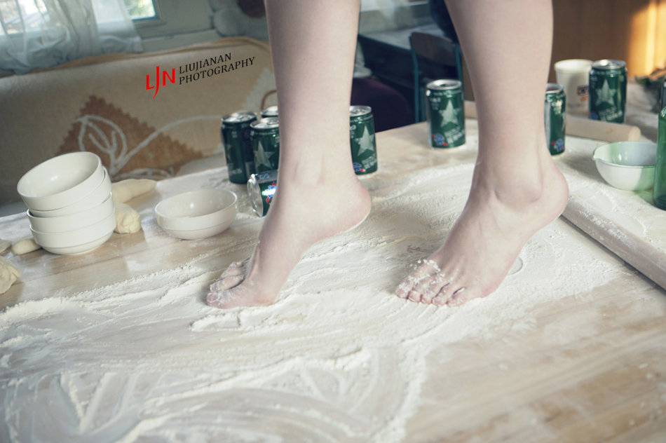 本次作品中,值得強調的一點是,“包餃子”是我最想拍的環節,專門找了一個舊時年代風格的家居環境來拍攝。也是出片張數最多的一組,所以分兩段來發布。用的包餃子的道具都是八十年代北方家庭的懷舊用品,包括鋁盆兒、攉陷器、蓋簾兒、搪瓷盤等都是可以勾起很多過往回憶的東西。而且和家人包餃子本身也是北方年俗和平日生活中很傳統、很其樂融融的一個活動,重新演繹也是希望喚起大家對這些家庭活動的興趣和重視。