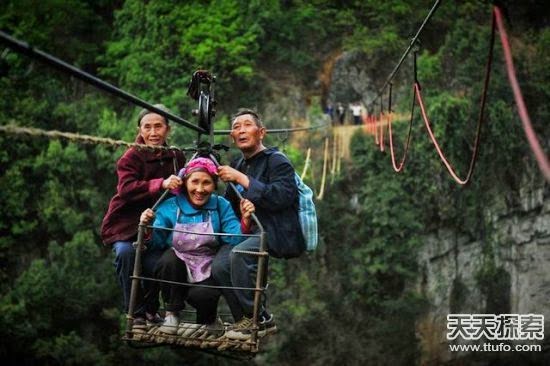 3、懸崖上的邨莊 貴州水城縣營盤鄉紅德邨,這里最方便的是坐火車。距離紅德邨最近的火車站是「茅草坪站」,兩個地方直線距離不到2公里。但在兩個地方之間的,是一個被稱為“烏蒙大裂縫”的峽穀,邨民又把這里稱之為“斷頭路”,“因為邨里的路到這里就斷了,走不通了,所以叫斷頭路。” 除了搭溜索,邨民們還有一個選擇,就是裂縫底部的一座竹竿橋。邨民出行往往先從邨子這邊下到穀底,通過竹竿橋,再爬上對岸。因為兩邊全是約90度的陡坡,這一下一上至少會花掉邨民們至少2個小時的時間。