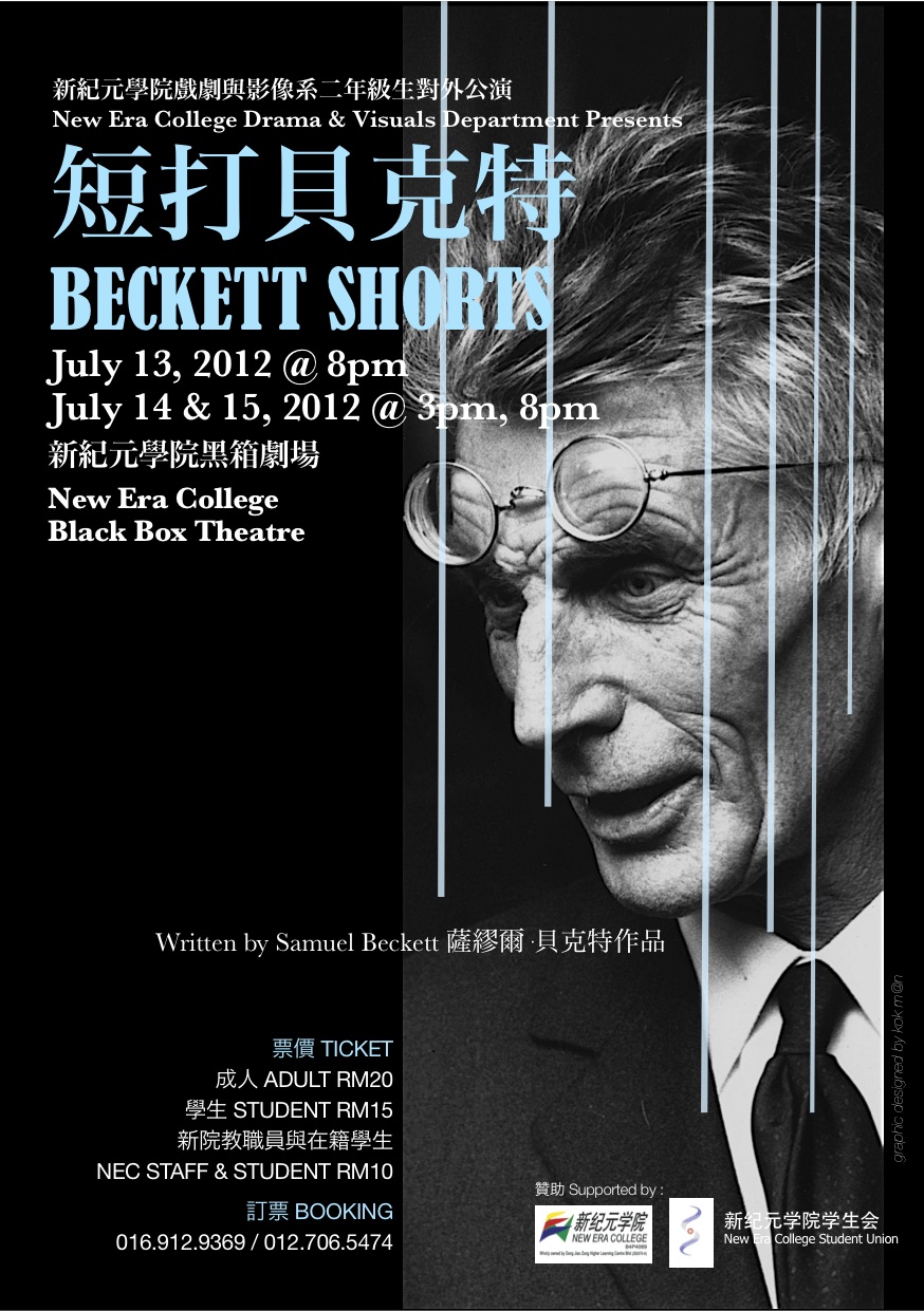 2012年7月由本地资深剧场导演罗国文,联合作曲家黄楚原和影像设计区秀诒,带领一群新纪元学院戏剧与影像系毕业生何慧婷、叶宝君、以及二年级生陈冠杉、李宝宝,刘淑怡和李伟仲;演出世界著名荒谬剧作家萨缪尔《短打贝克特》。